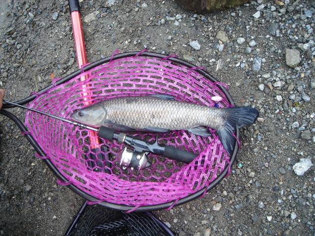 午後は、アメキャ狙い。狙って釣れるもんじゃないけど、がんばってみる。タックルはもちろんマスレンジャー。無謀は承知!掛かってから考えることにする。