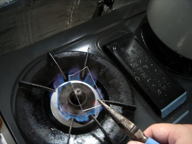 プラ板を暖めてやわらかくします。やりすぎるとヘナヘナになるから、さっと暖めます。