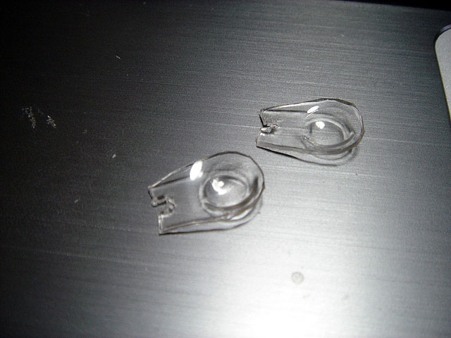 リップの折れてない「生きてる」X-80のリップに暖めたプラ板を重ねて、カップ部分をへこまします。